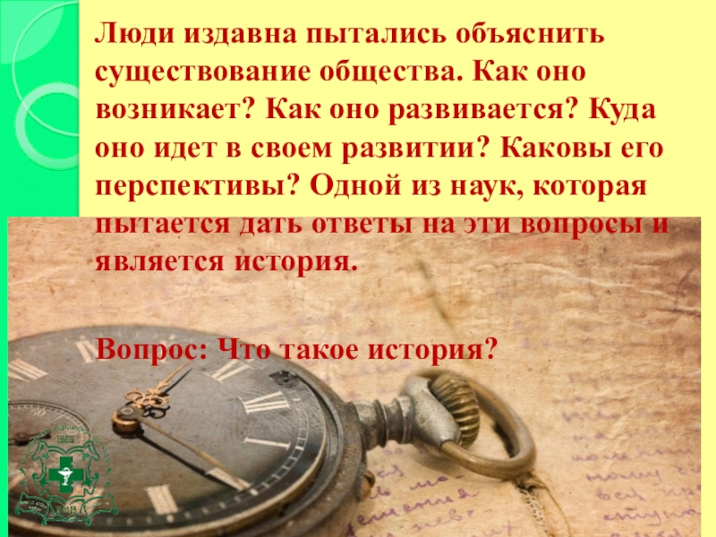 развивается? Куда оно идет в своем развитии? Каковы его перспективы? Одной из наук, которая пытается дать ответы на эти вопросы и является история.