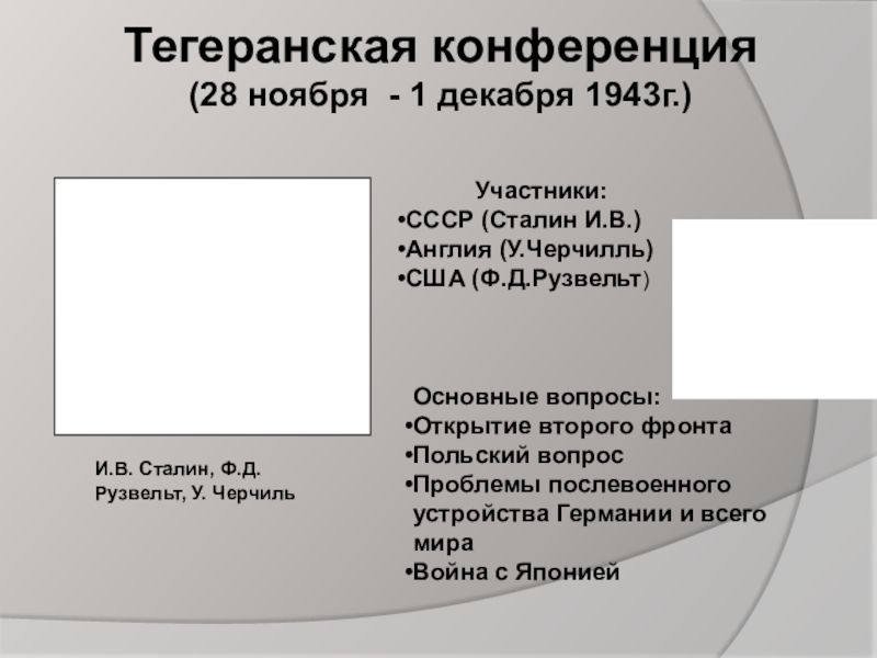 И.В. Сталин, Ф.Д.Рузвельт, У. Черчиль