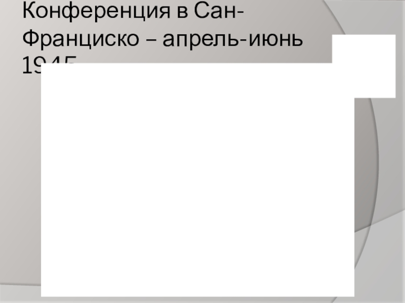 Слайд 22Конференция в Сан-Франциско – апрель-июнь 1945