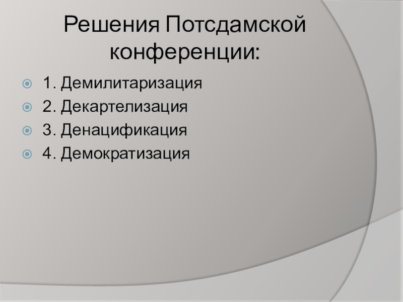 Было принято решение не создавать центрального германского правительства, а передать власть Контрольному совету;