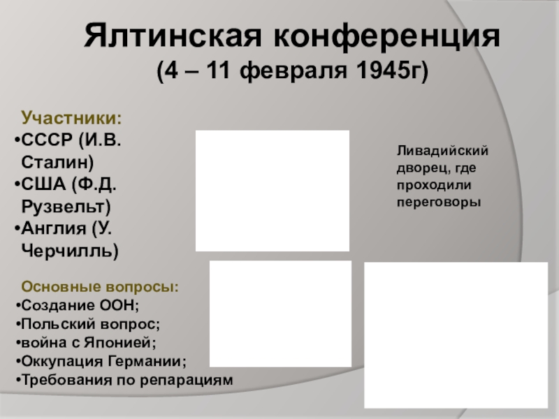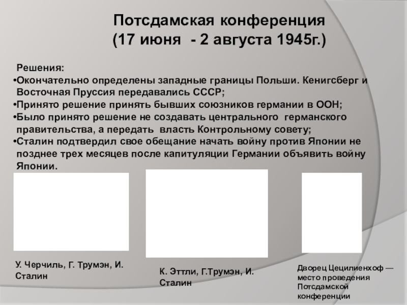 Кенигсберг и Восточная Пруссия передавались СССР;