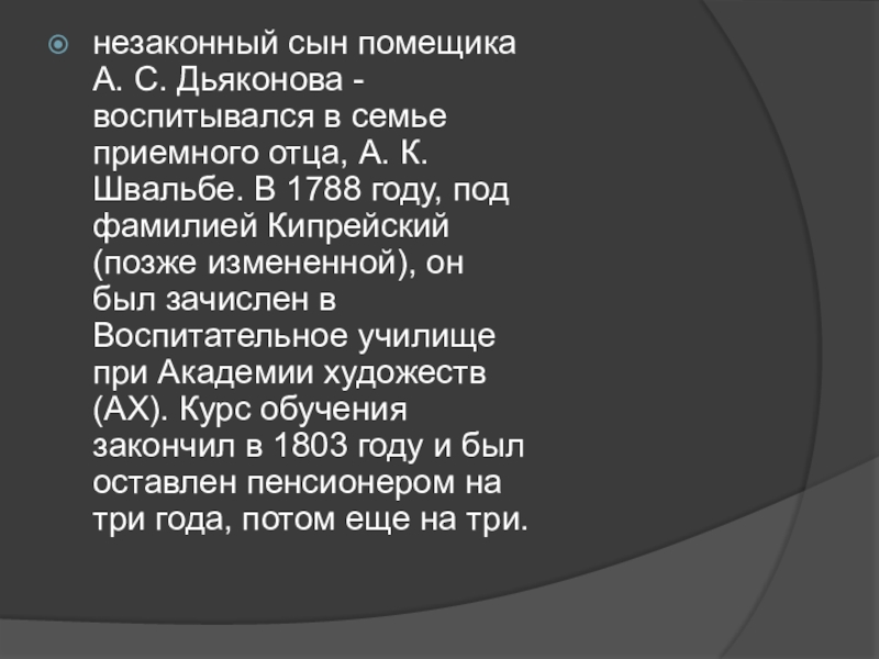 Слайд 2незаконный сын помещика А. С. Дьяконова - воспитывался в семье приемного