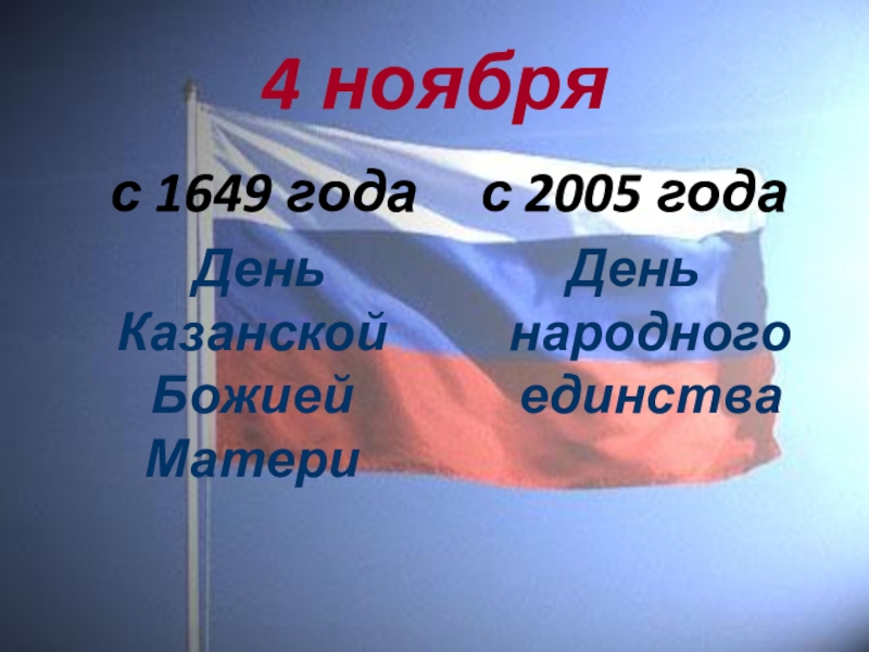 4 ноября   с 1649 года  День Казанской Божией Материс 2005 годаДень народного единства