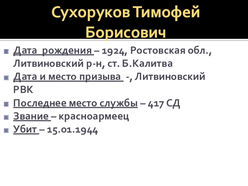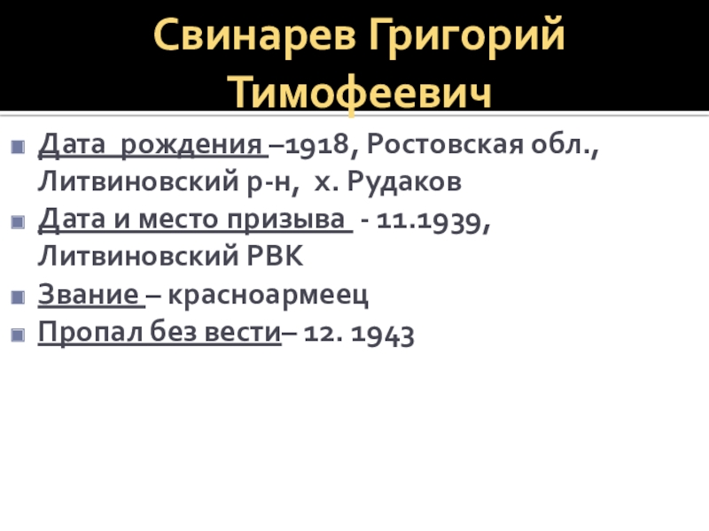 Дата рождения – 1919, Ростовская обл., Литвиновский р-н, х.