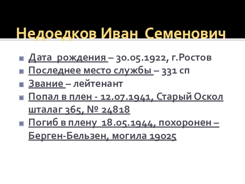 Иван Михайлович 30.12. Краиб (Нараиб) 13.01. Лакомий Николай Алексеевич 21.01.