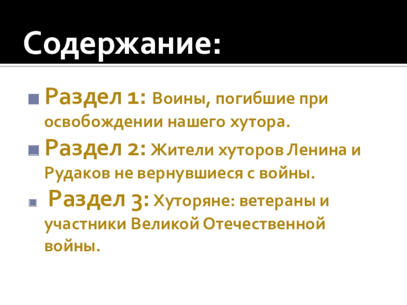 Раздел 3: Хуторяне: ветераны и участники Великой Отечественной войны.