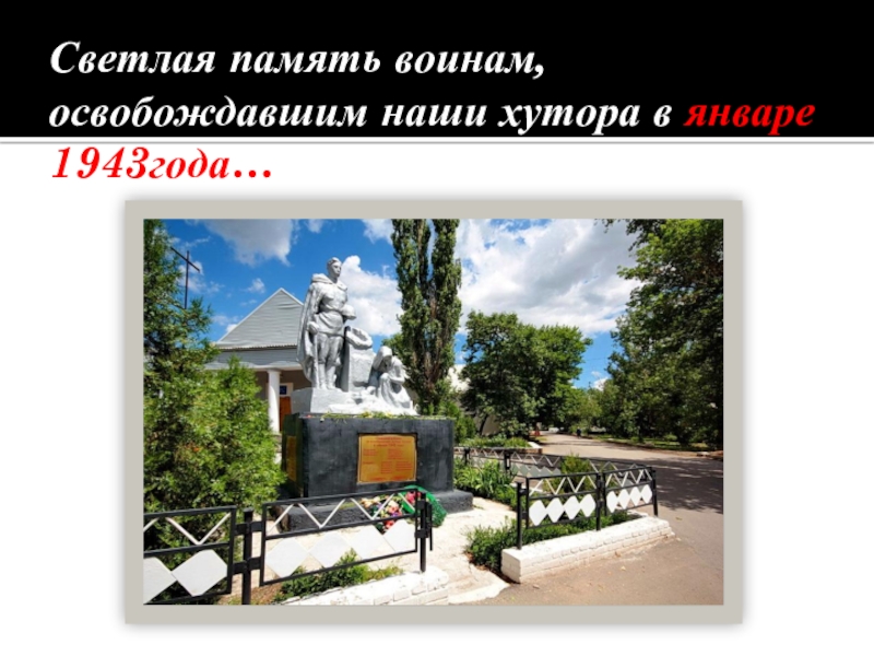 Слайд 4Светлая память воинам, освобождавшим наши хутора в январе 1943года…