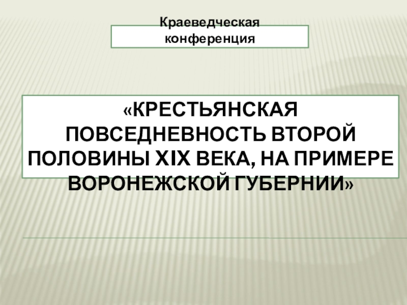 Слайд 1«Крестьянская повседневность второй половины XIX века, на примере Воронежской губернии»