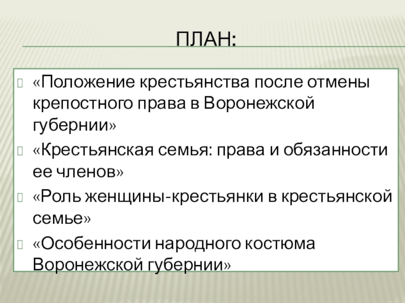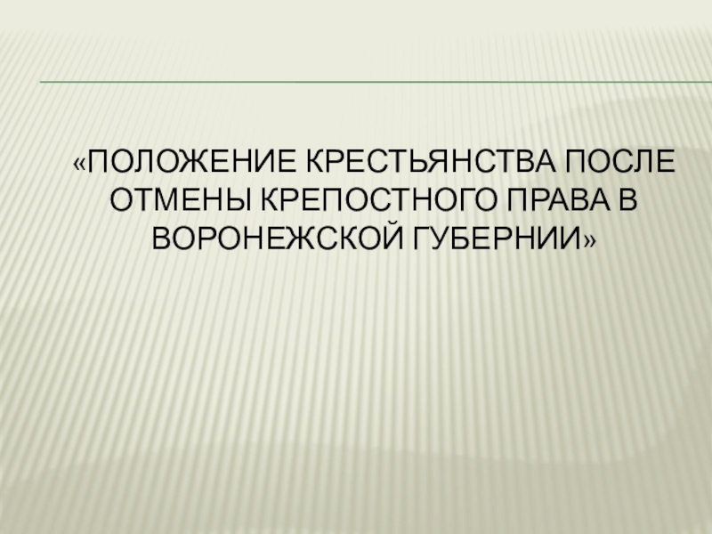 Слайд 4«Положение крестьянства после отмены крепостного права в Воронежской губернии»