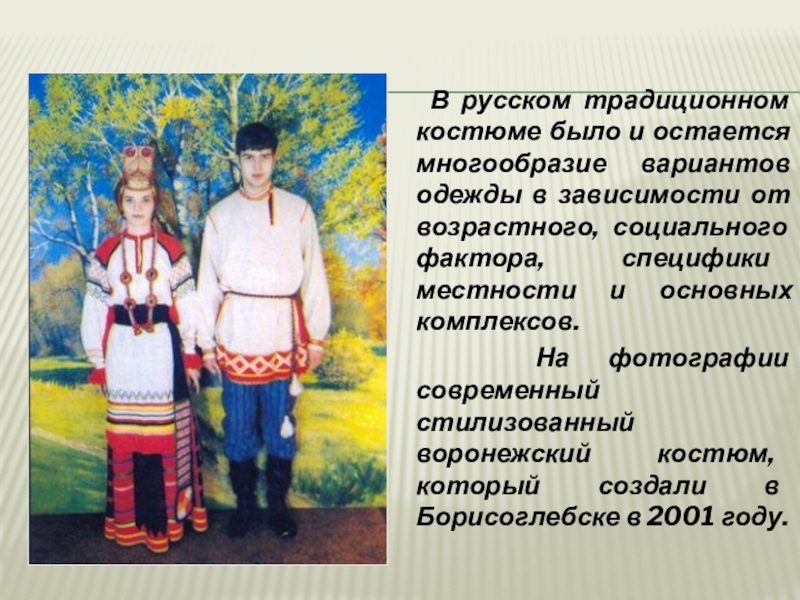 Слайд 10 В русском традиционном костюме было и остается многообразие вариантов