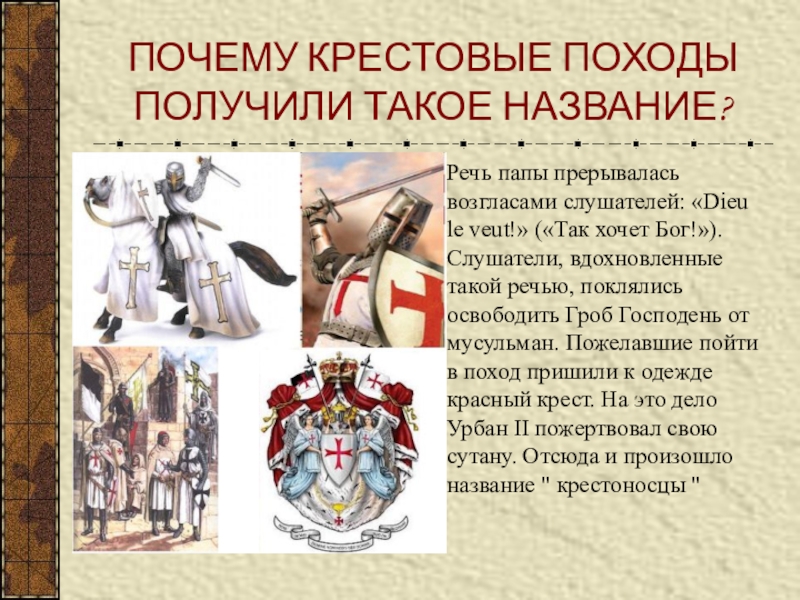 Слайд 8ПОЧЕМУ КРЕСТОВЫЕ ПОХОДЫ ПОЛУЧИЛИ ТАКОЕ НАЗВАНИЕ?