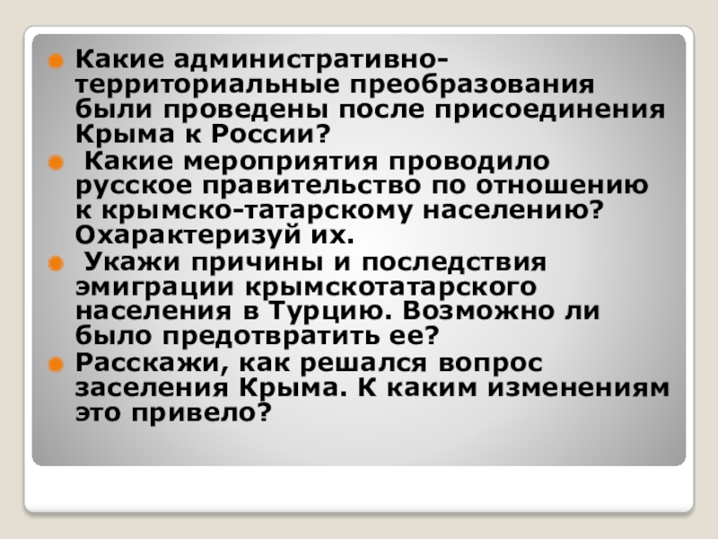 мероприятия проводило русское правительство по отношению к крымско-татарскому населению? Охарактеризуй их.