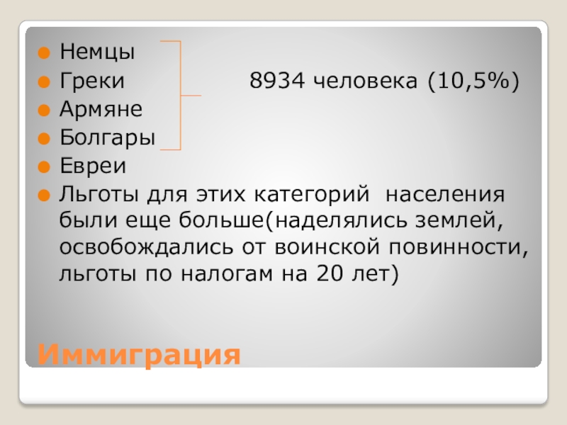Льготы для этих категорий населения были еще больше(наделялись землей, освобождались от воинской повинности, льготы по налогам на 20 лет)