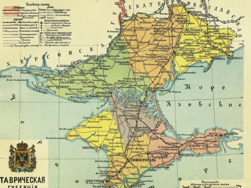 Площадь – 7 уездов: Перекопский, Феодосийский, Евпаторийский, Симферопольский,