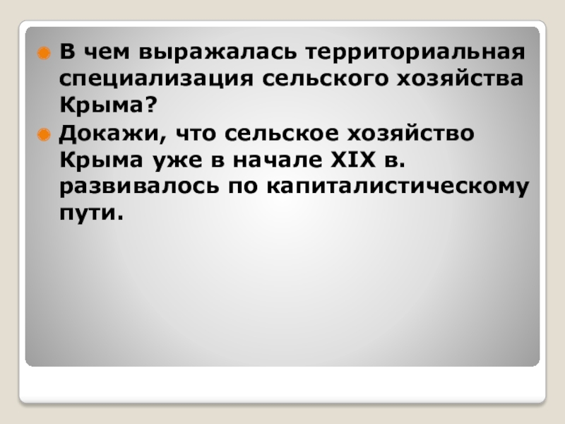 Слайд 15В чем выражалась территориальная специализация сельского хозяйства Крыма?