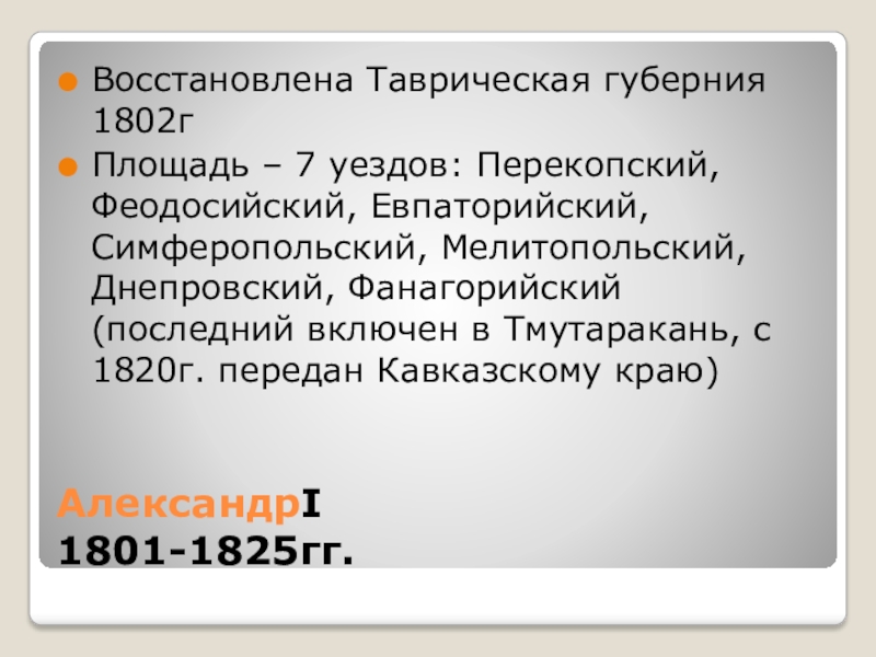 Восстановлена Таврическая губерния 1802г