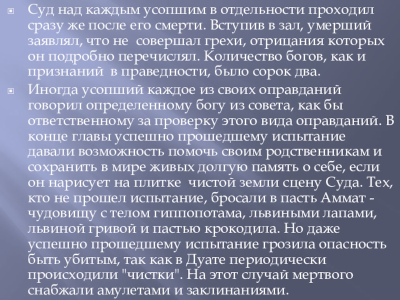 Слайд 6Суд над каждым усопшим в отдельности проходил сразу же после его