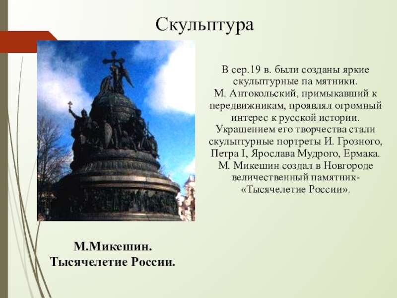 М. Микешин создал в Новгороде величественный памятник- «Тысячелетие России».