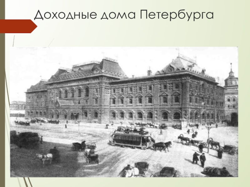 универсальные магазины, фабричные здания, казармы для рабочих, склады, вокзалы и доходные дома.