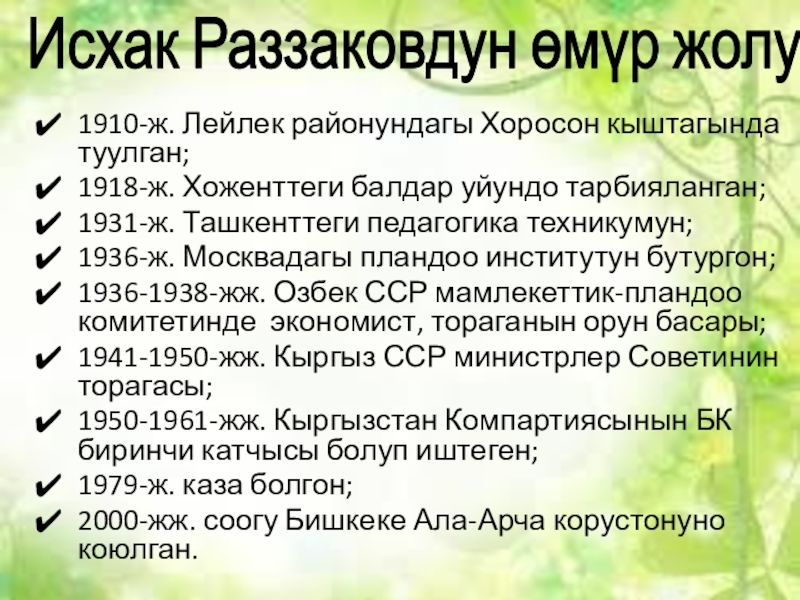 Слайд 6Исхак Раззаковдун өмүр жолу