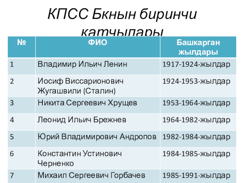 Слайд 2КПСС Бкнын биринчи катчылары
