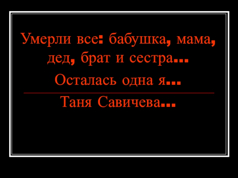 Умерли все: бабушка, мама, дед, брат и сестра…Осталась одна я…Таня Савичева…