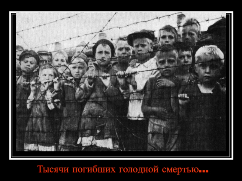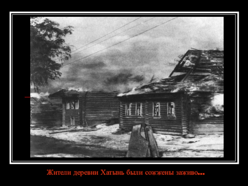 Слайд 13Жители деревни Хатынь были сожжены заживо…