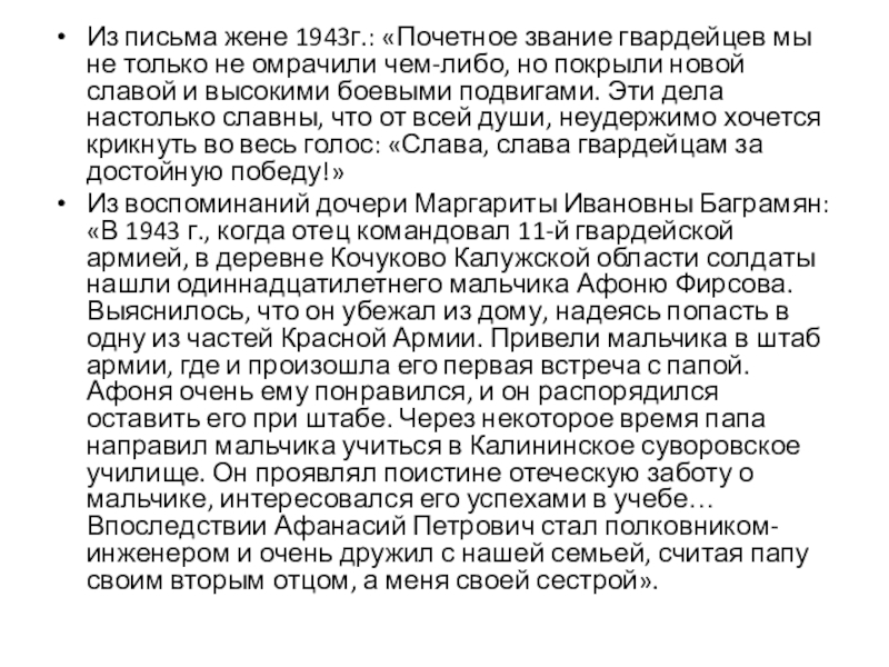 Слайд 21Из письма жене 1943г.: «Почетное звание гвардейцев мы не только не