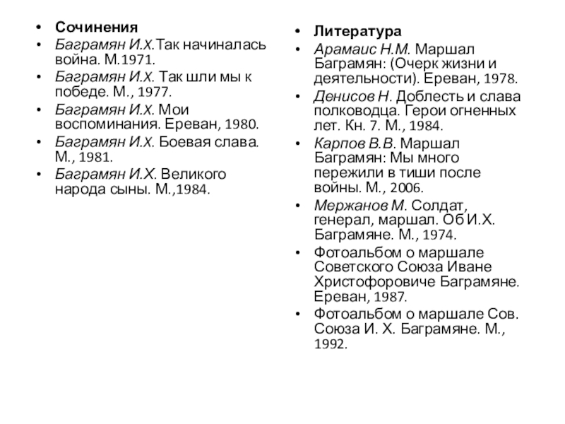 Арамаис Н.М. Маршал Баграмян: (Очерк жизни и деятельности). Ереван, 1978.