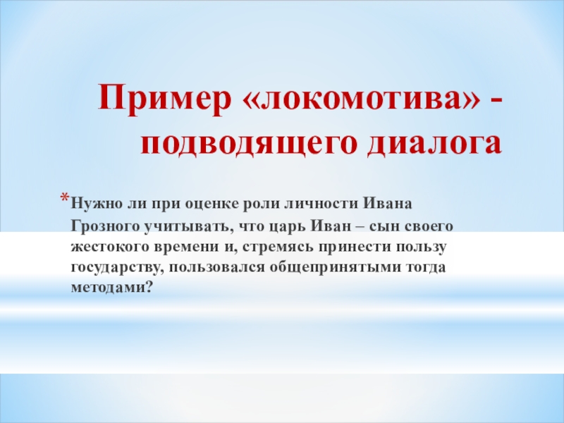 Пример «локомотива» - подводящего диалога