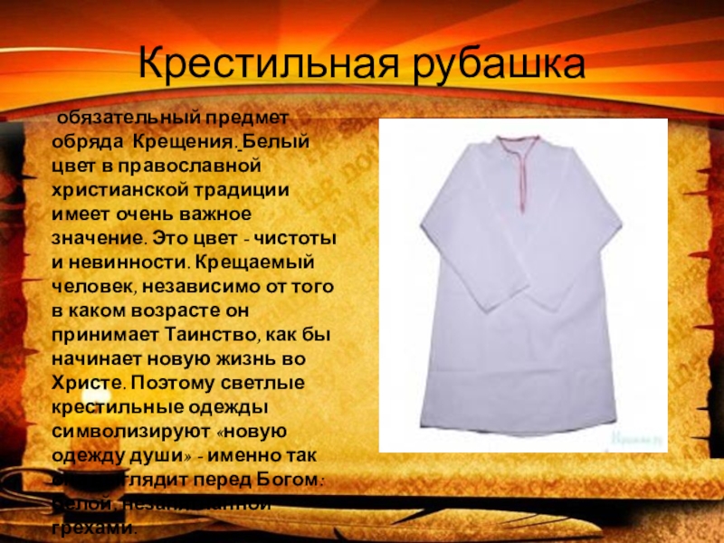 обязательный предмет обряда Крещения. Белый цвет в православной