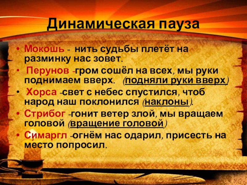 Симаргл -огнём нас одарил, присесть на место попросил.