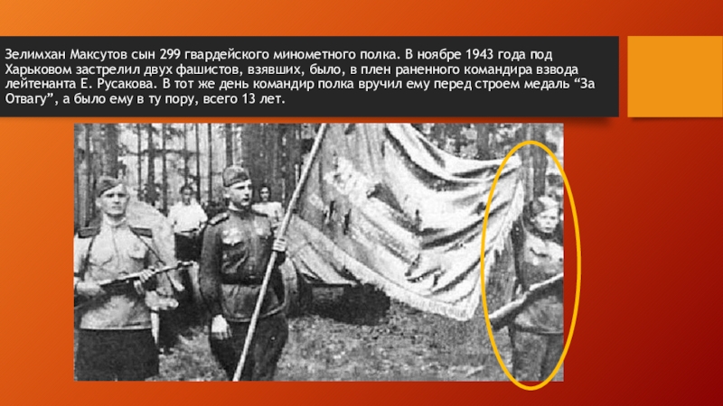 Слайд 18Зелимхан Максутов сын 299 гвардейского минометного полка. В ноябре 1943 года