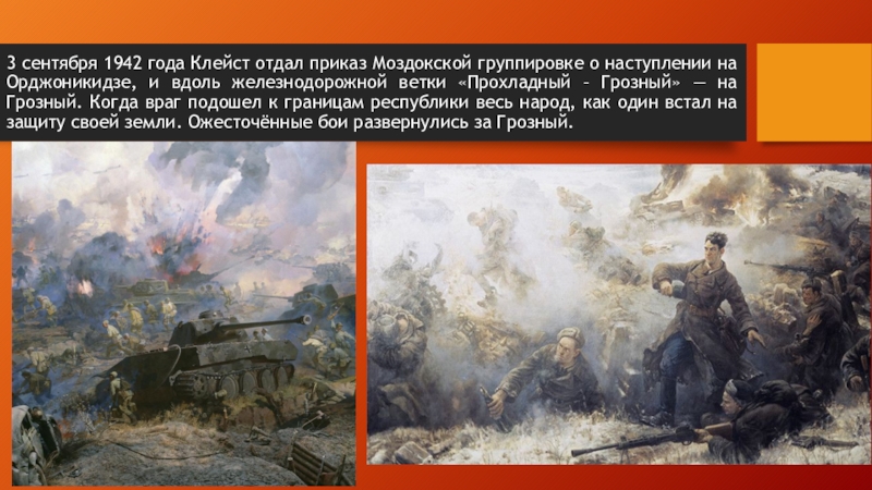Слайд 93 сентября 1942 года Клейст отдал приказ Моздокской группировке о наступлении