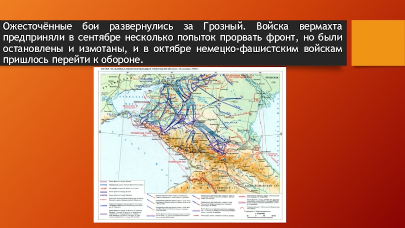 Слайд 10Ожесточённые бои развернулись за Грозный. Войска вермахта предприняли в сентябре несколько