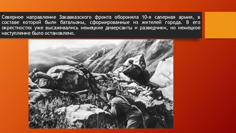Слайд 8Северное направление Закавказского фронта обороняла 10-я саперная армия, в составе которой