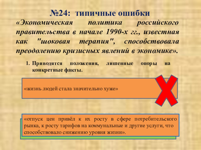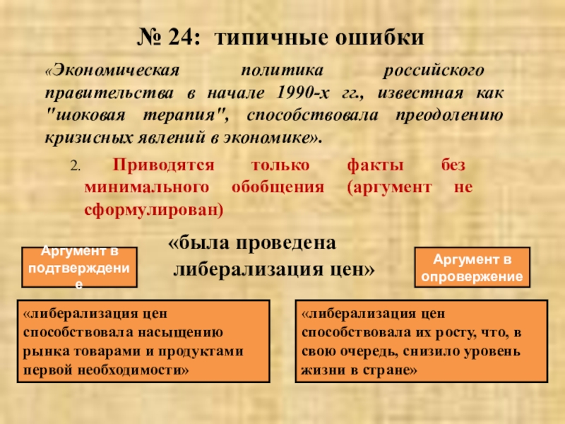 «Экономическая политика российского правительства в начале 1990-х гг., известная как "шоковая терапия", способствовала преодолению кризисных явлений в экономике».