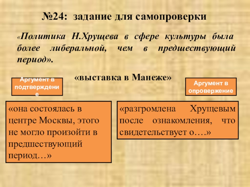 «Политика Н.Хрущева в сфере культуры была более либеральной, чем в предшествующий период».