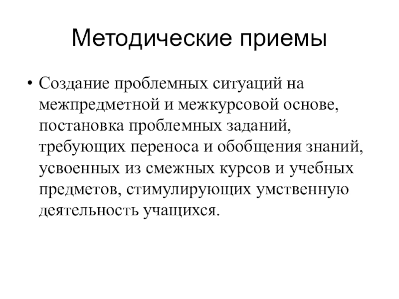 Создание проблемных ситуаций на межпредметной и межкурсовой основе, постановка проблемных