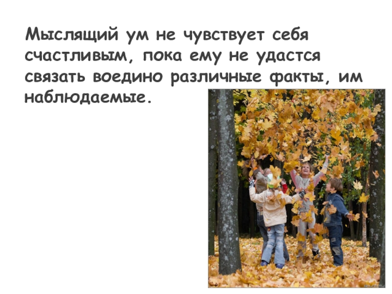 Слайд 15 Мыслящий ум не чувствует себя счастливым, пока ему не удастся