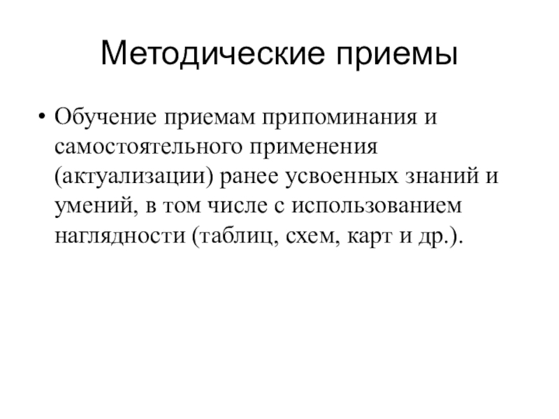 Обучение приемам припоминания и самостоятельного применения (актуализации) ранее усвоенных знаний