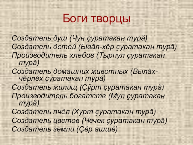 Создатель детей (Ывӑл-хӗр ҫуратакан турӑ)