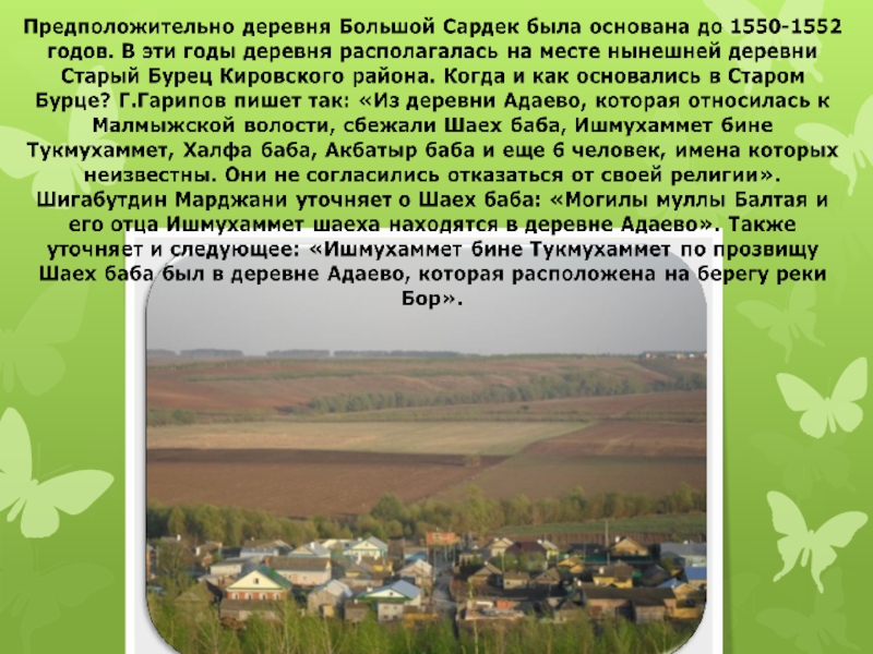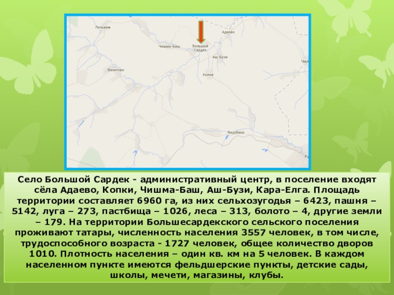 Слайд 5Село Большой Сардек - административный центр, в поселение входят сёла Адаево,