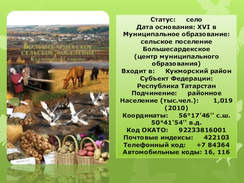Слайд 4Большой Сардек - самое крупное сельское поселение Кукморского района. Территория села