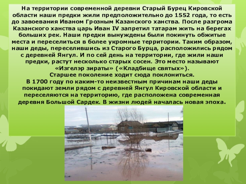 Слайд 9На территории современной деревни Старый Бурец Кировской области наши предки жили