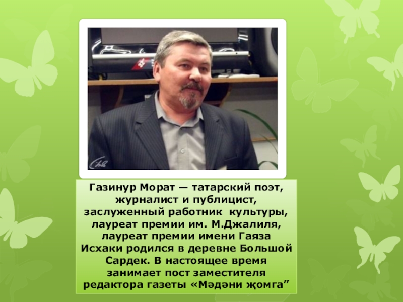Слайд 19Газинур Морат — татарский поэт, журналист и публицист, заслуженный работник культуры,