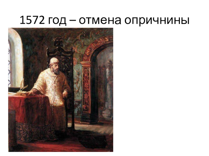 1565 г. – введение опричниныОпричнина – особый порядок управления страной, существовавший с 1565–1572 гг.