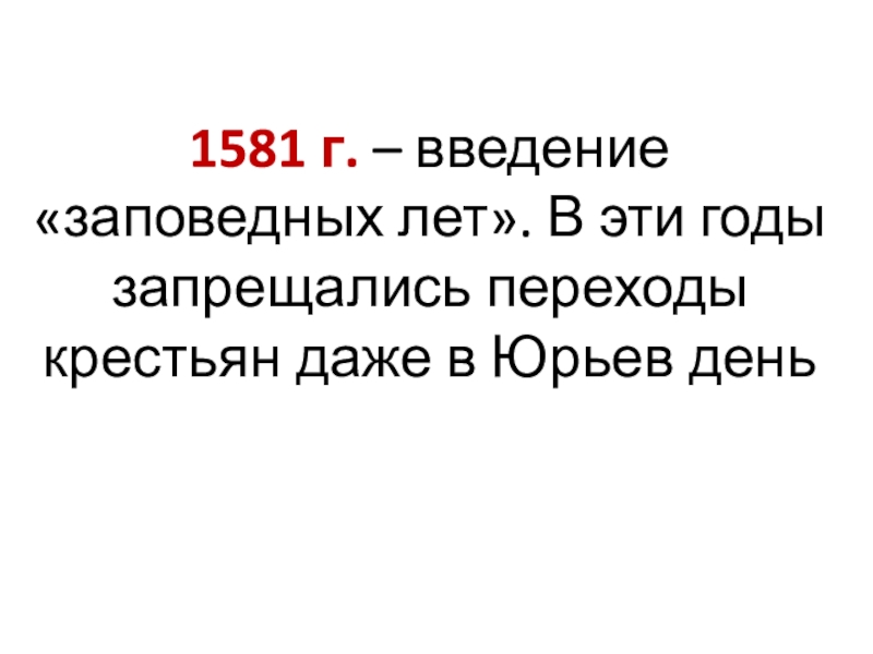 1581 г. – введение «заповедных лет». В эти годы запрещались переходы крестьян даже в Юрьев день