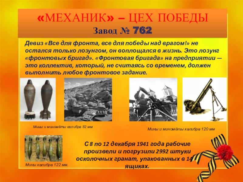 С 8 по 12 декабря 1941 года рабочие произвели и погрузили 2992 штуки осколочных гранат, упакованных в 1496 ящиках.