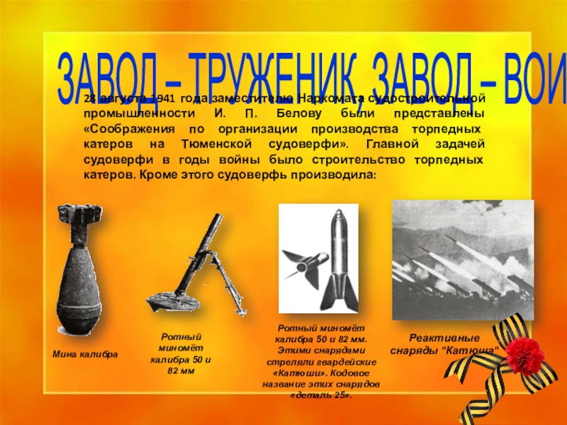 Ротный миномёт калибра 50 и 82 мм. Этими снарядами стреляли гвардейские «Катюши». Кодовое название этих снарядов «деталь 25».